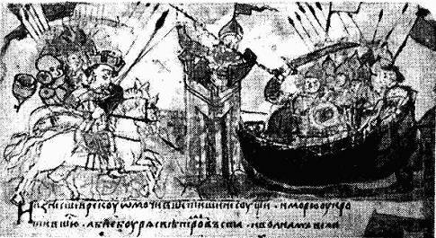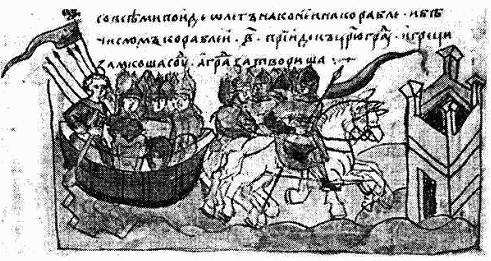 Рассказы о русских князьяхА. Нечволодов (традиционная версия) излагает историю этого времени следующим образом. «К половине девятого века почти везде уже в Европе жили не разрозненные племена, а были образованы государства. Через два года после призвания князей братья Рюрика, Синеус и Трувор, умерли, и он стал единовластно править над новгородскими славянами, кривичами и над финскими племенами — весью, мерей и муромой, сажая во все города своих посадников из старших витязей прибывшей с ним русской дружины. Хотя Синеус и Трувор ничего на Руси сделать не успели, притом вызывает сомнение даже сам факт их существования, в русской топонимике имеются места, связанные с этими персонажами. Это так называемые Курган Синеуса вблизи Белоозера и Труворово городище. Имеется даже «Труворов камень». Два мужа из этой дружины, не получившие в управление городов, Аскольд и Дир, отпросились у Рюрика идти искать счастье в Царьград. Следуя по великому пути из варяг в греки, они дошли по Днепру до Киева. Здесь, узнав, что Киев не имеет своего князя, а платит дань хазарам, и полюбив это бойкое и богатое место, Аскольд и Дир решили остаться; к ним присоединилось много варягов, и они стали владеть Киевом и всей Полянской землей, причем освободили ее от платежа дани хазарам и успешно воевали со степными хищниками и некоторыми соседними племенами. Рис. 17. Труворово городище. Современный вид. Фотографии из книги А. Нечволодова. Через четыре года Аскольд и Дир настолько уже вошли в силу, что могли привести в исполнение заветное желание русов отомстить коварным и высокомерным грекам за все обиды и унижения, которые претерпевали от них наши предки во время хазарского ига.[21] К этому еще представился и подходящий случай: греки убили в Царьграде нескольких русских провевальщиков зерна по ничтожному поводу. И вот в 866 году Аскольд и Дир решили совершить смелый набег на Царьград, как хаживали на него в старину смельчаки с устьев Днепра и Дона. Они собрали двести ладей, то есть больших лодок с мачтами и парусами, посадили на каждую от сорока до шестидесяти человек и настолько скрытно совершили свой переход по Днепру и Черному морю, что до самого их появления у Царьграда никто и не подозревал об этом набеге. Патриарх Фотий был в это время в Константинополе и оставил подробное описание происшедшего. По его словам, русский набег случился в один из прекрасных летних дней, под вечер, при совершенно тихом море. В этот прекрасный летний вечер царьградские горожане любовались красотами своего любимого моря не только из великолепных палат, но и из бедных хижин, со своих улиц и площадей, из бесчисленных садов и даже со стен самого города, которые опоясывали его со всех сторон по берегу моря. Император Михаил отсутствовал со всем своим войском, так как двинулся против арабов, и спокойный и беспечный город вовсе не ожидал ничего чрезвычайного, как вдруг в проливе из Черного моря обозначилось что-то невиданное, которое скоро превратилось в целую кучу русских ладей. Весь город обезумел от страха. Все в один голос с ужасом воскликнули: «Что это? Что это?» А русы подплывали все ближе и ближе, навевая на всех своим видом что-то свирепое, дикое и убийственное; скоро они стали сходить на берег и угрожать городу, простерши свои мечи. Рис. 18. Курган Синеуса близ Белоозера. Фотография из книги А