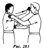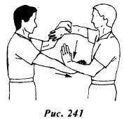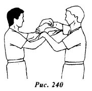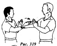 Техника Чи Сау Термин Чи Сау дословно означает «липкие руки» или «склеенные руки». Техника Чи Сау представляет собой достаточно обширный набор парных упражнений, вырабатывающих чувство момента необходимого для ведения реального поединка. Научившись контролировать руки противника, легко определить слабые места в его защите и своевременно провести атаку. Постоянная практика упражнений Чи Сау тренирует нервную систему так, что становится возможным мгновенно реагировать на движение противника и проводить адекватные защитные и контратакующие действия. В предыдущей книге мы подробно рассмотрели теоретические основы и базовые упражнения Чи Сау первого этапа обучения. На втором этапе изучения Вин Чунь технике Чи Сау уделяется самое пристальное внимание. Время, выделяемое на отработку упражнений данного раздела, занимает до 60% от общей продолжительности тренировок. Исходя из программы обучения, отрабатываются только упражнения второй формы Чи Сау, именуемые Шун Чи Сау. Как уже отмечалось ранее (см. первую книгу) в данных упражнениях партнеры используют обе руки. Первый этап Шун Чи Сау - Пун Сау был описан в предыдущей книге. Здесь мы остановимся на рассмотрении упражнений Коу Сау, которые представляют собой всевозможные защитно-атакующие комбинации, выходящие из базового упражнения Пун Сау - «вращающиеся руки». Упражнение Куо Сау тренируют способностью мгновенно оценивать ситуацию, находить уязвимые места в защите противника и эффективно контратаковать. Развивается чувство правильного момента времени для проведения атаки и нанесения удара. Своевременность действий является существенным моментом в искусстве поединка. Перейдем к описанию упражнений. Упражнение №1 Выполняя базовое упражнение Пун Сау (вращение рук). Партнеры оказываются в позиции изображенной на рисунке 240. Нанесите удар основанием правой ладони в область груди. Ваш партнер незамедлительно реагирует, блокируя атаку движением Лжам Сау левой рукой (рис.241). Мгновенно он наносит прямой удар левым кулаком Ят Чи Куен в голову. Вы блокируете атаку оппонента, выполняя движение Тан Сау правой рукой (рис.242). Далее, ваш партнер изменяет положение левой руки на Фук Сау, контролируя вашу правую руку (рис.243). Теперь поменяйте положение рук путем обычного вращения Пун Сау. Ваша правая рука принимает положение Бон Сау, а левая - Фук Сау. У вашего партнера левая рука находится в положении Фук Сау, а правая - в положении Тан Сау (рис.244). Оппонент атакует, нанося удар основанием правой ладони. Нейтрализуйте атаку движением Джам Сау левой рукой (рис.245), а затем мгновенно нанесите прямой удар левым кулаком Ят Чи Куен в область груди. На что ваш партнер отвечает блокирующим движением Тан Сау правой рукой (рис.246,247). Измените положение левой руки на Фук Сау (рис.248). Выполните базовое вращение Пун Сау. возвращаясь в первоначальное положение (рис.249). Повторите упражнение 10 раз, после чего поменяйтесь ролями. Упражнение №2 Выполняя базовое вращение Пун Сау, партнеры оказываются в положении изображенном на рисунке 250. Ваша левая рука находится в позиции Фук Сау, а правая - в позиции Тан Сау. У вашего партнера левая рука принимает положение Фук Сау, а правая - Бон Сау. Почувствовав чрезмерное давление вниз со стороны левой руки оппонента, выполните вращательное движение правой кистью Хуен